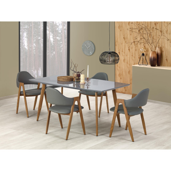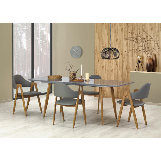 extension table, dimensions: 160-200/90/76 cm, material: lacquered MDF / painted steel, color: top - grey, legs - honey oak